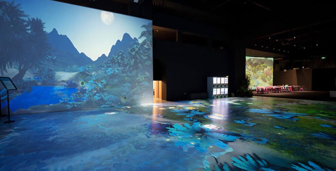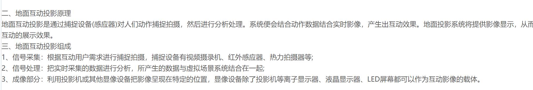 地面互动投影是展厅常用的投影展示方式之一,它是运用高流明投影机将影像投射到地面上,产生多种神奇的景象;当人们走过投影区域时,地面上相应的影像会发生变化。动态展示的同时,可满足多人参与互动,使观众身临其境,参与互动。