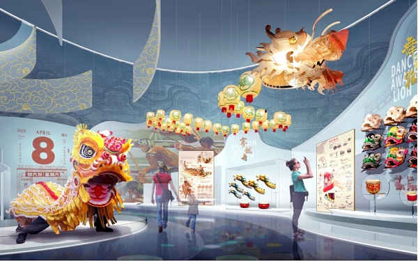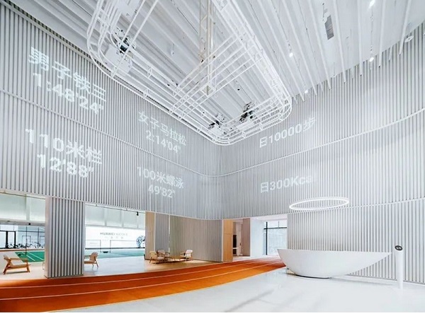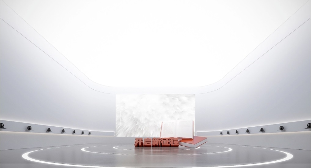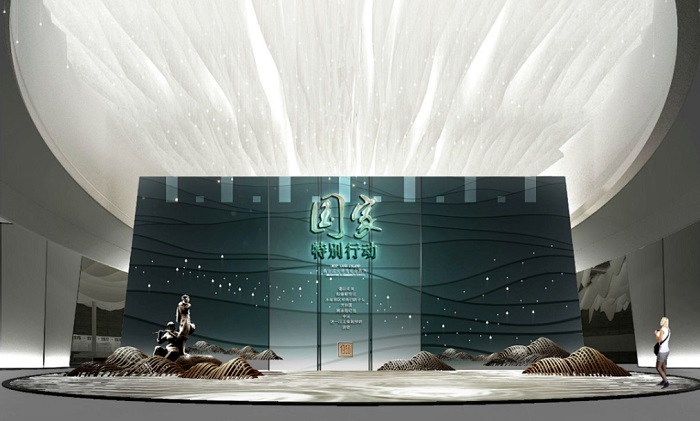 利用挑高空间打造巨型装置,或通过垂挂式布展营造震撼的视觉效果。注重空间比例,避免压抑感;利用灯光、材质等元素强化空间纵深感。